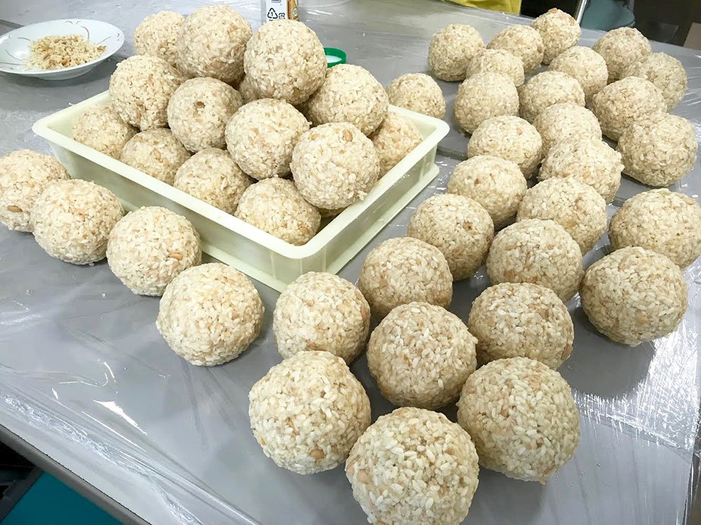 だんだん慣れてきて、みんな1度で200グラムが作れるようになり、私のグループではピタリ団子作りゲームみたいになっていました(笑)