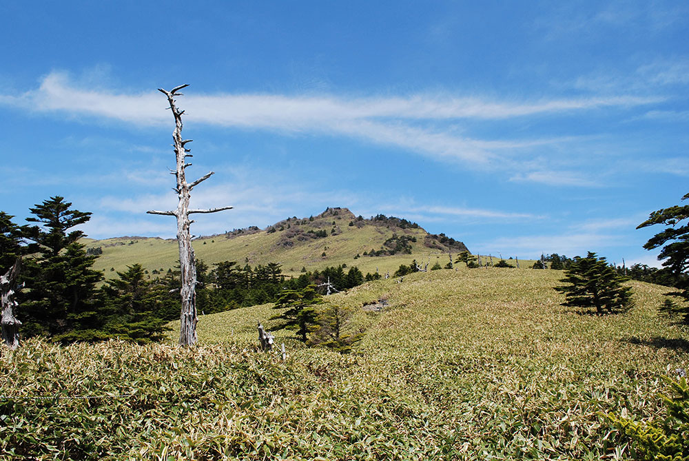 また、女山から男山にかけての稜線は平たい原っぱのようになっており、白骨林の美しい氷見二千石原は絶景。その場所では石鎚山も望むことができます。よくポスターなどで使われている写真は、そのあたりで撮られたものが多いです。