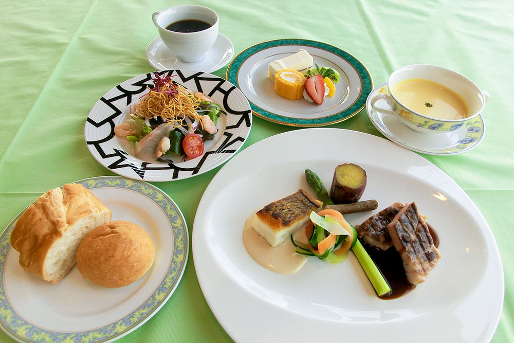 A)地元の食材をたっぷりと使った料理で、このイベントのためだけに開発された特別メニューです。別子産の媛っこ地鶏や大島産の白芋、愛媛の甘とろ豚や愛鯛などを使っています。私たちも春に試食しました。愛媛産の食材は本当においしいと感じました。