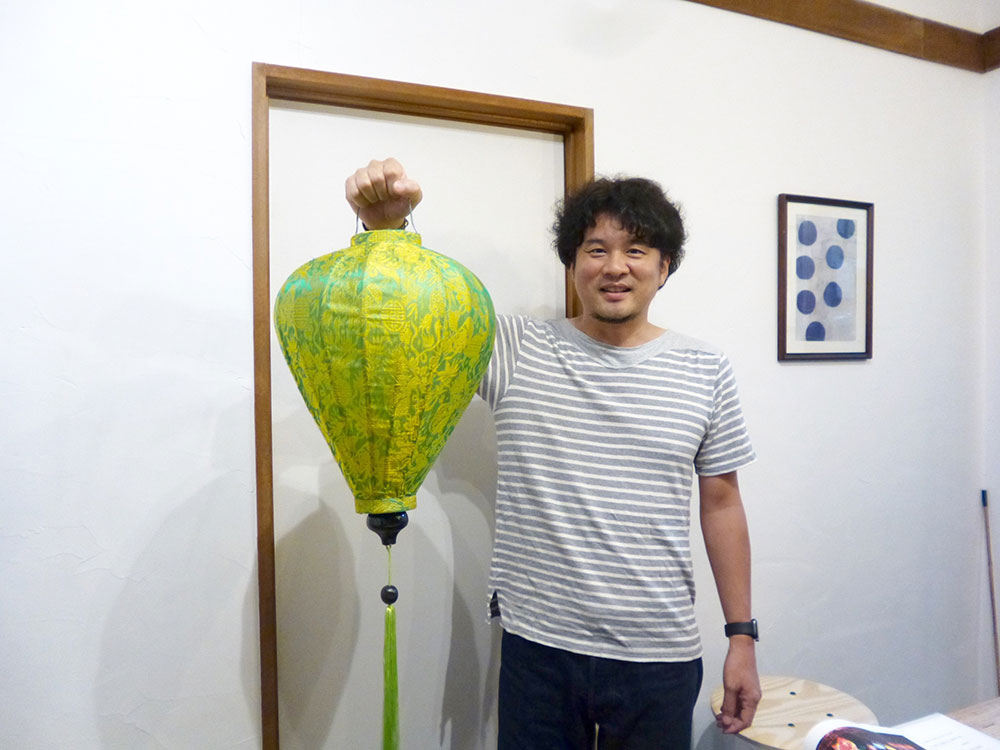 ベトナムランタンは、日本でいうところのちょうちん。しかし、骨組みは横ではなく縦に組まれ、白を貴重とした和紙を使用したちょうちんの多い日本とは対称的に、色とりどりの布を貼り付けて作ることで、多彩な色のランタンになります。