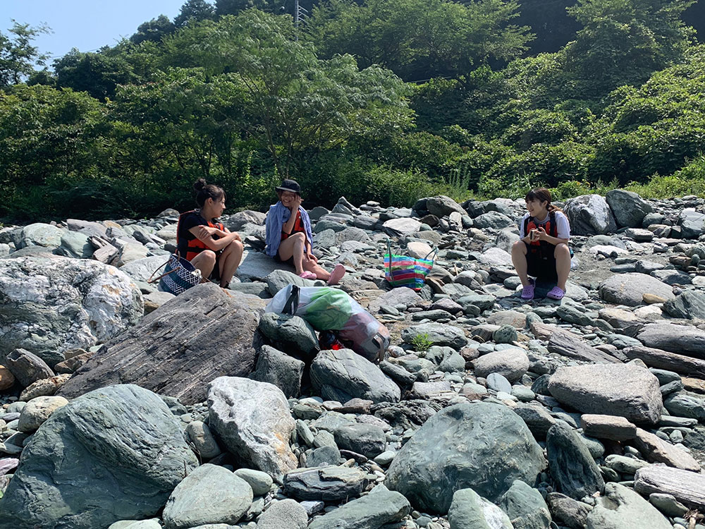 また、河原には大きな石や砂利があるため、足先と踵がホールドされているサンダルが良いそうです。(ビーチサンダルのようなものだと足の爪が割れることもあるため、履物には注意してください)準備物は、水分補給のための飲み物、日焼け止め、着替え用の服やタオルなどです。