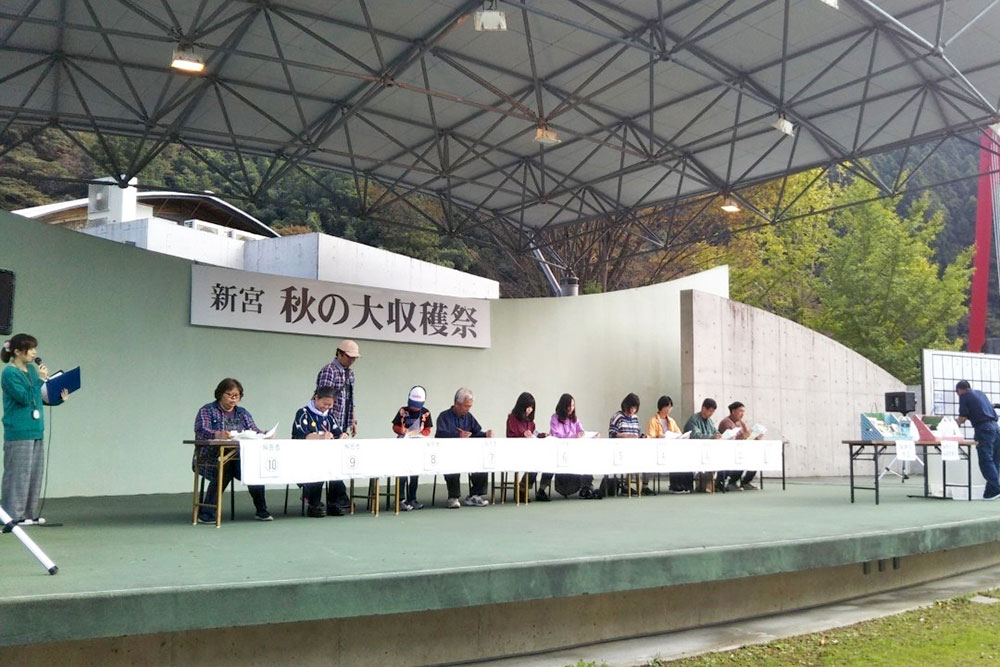 会場の「霧の森イベント広場」では、「第1回霧の森秋の大収穫祭」が開催されていました。ここでは地元新宮の新鮮な野菜や果物、スイーツなどを販売するたくさんのお店が出店。バルーンアートのショーなども行われており、子どもから大人まで楽しめるイベントです(秋の大収穫祭のレポートはこちら)。その一角にブースを構えていたのが「お茶万博」です。