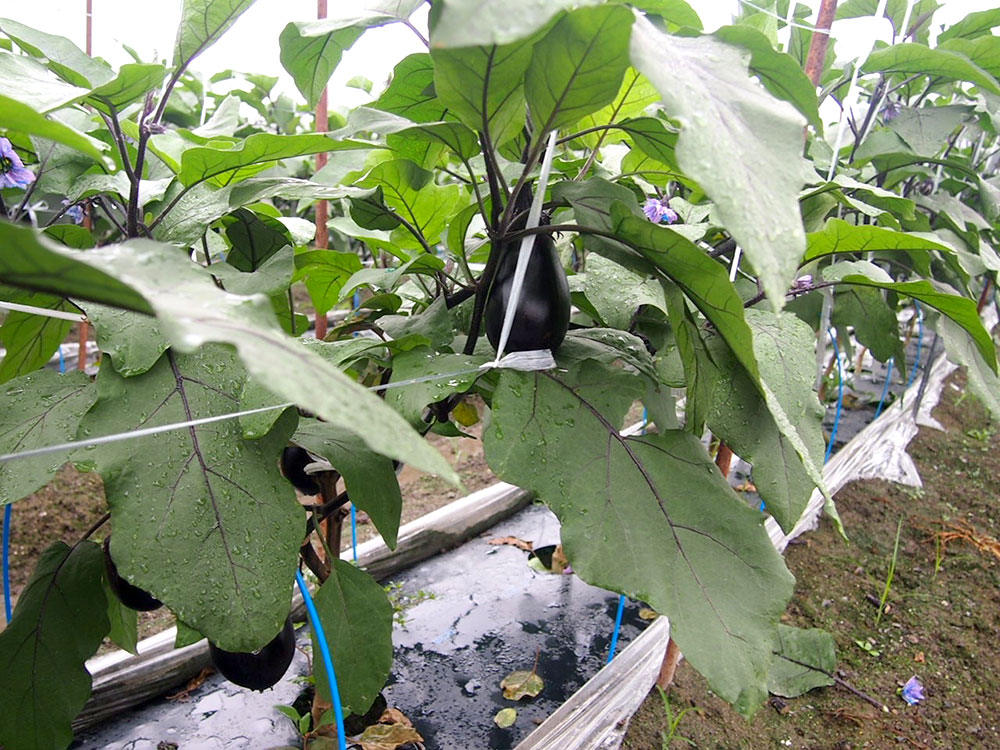 現在、西条市内の絹かわなす部会に参加されている12軒の農家さんが栽培しています。