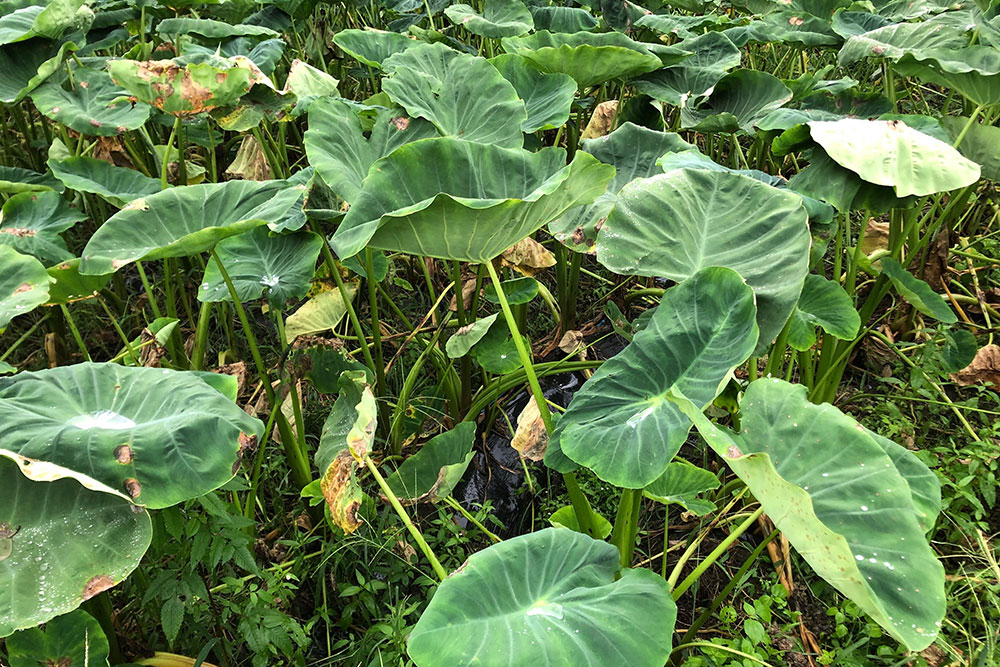 この葉っぱの正体は、サトイモ。