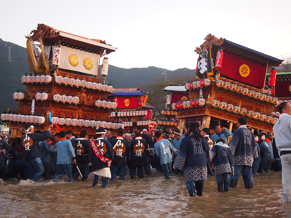 これから始まる川入りを、東側に据えただんじりが見守ってくれます。
