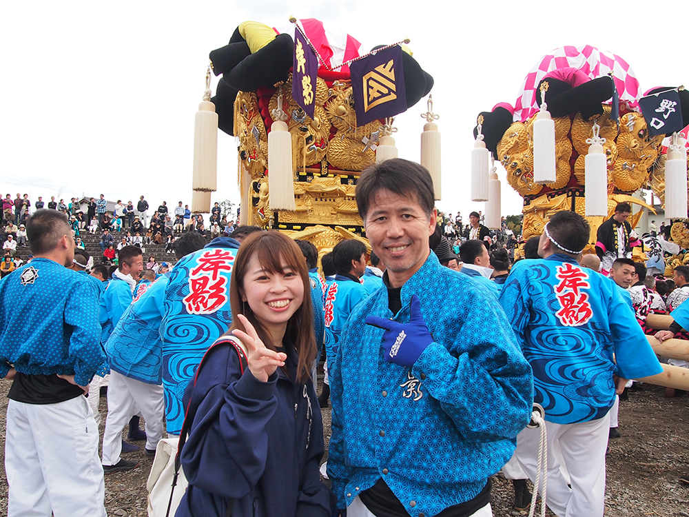 「岸影太鼓台は、放り投げやさしあげるときに落とさないし粘り強いんです! みんなカッコイイです!」と笑顔で話してくれました。