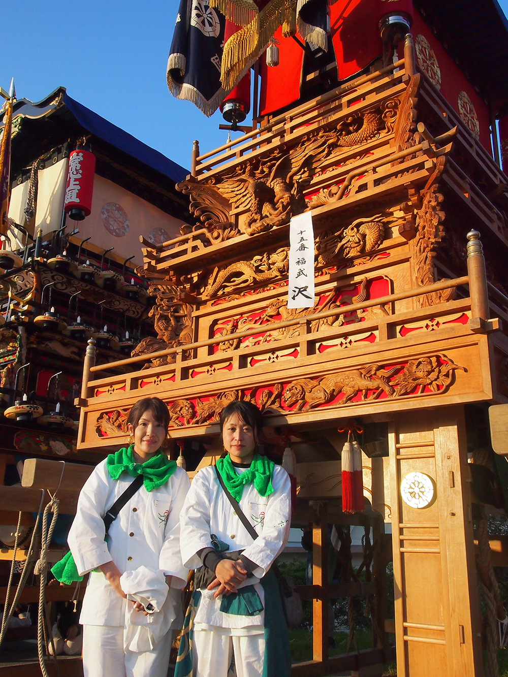 福武沢だんじりの戸田万葉子(まよこ)さん(左)と佐伯寿子(ひさこ)さん(右)。
