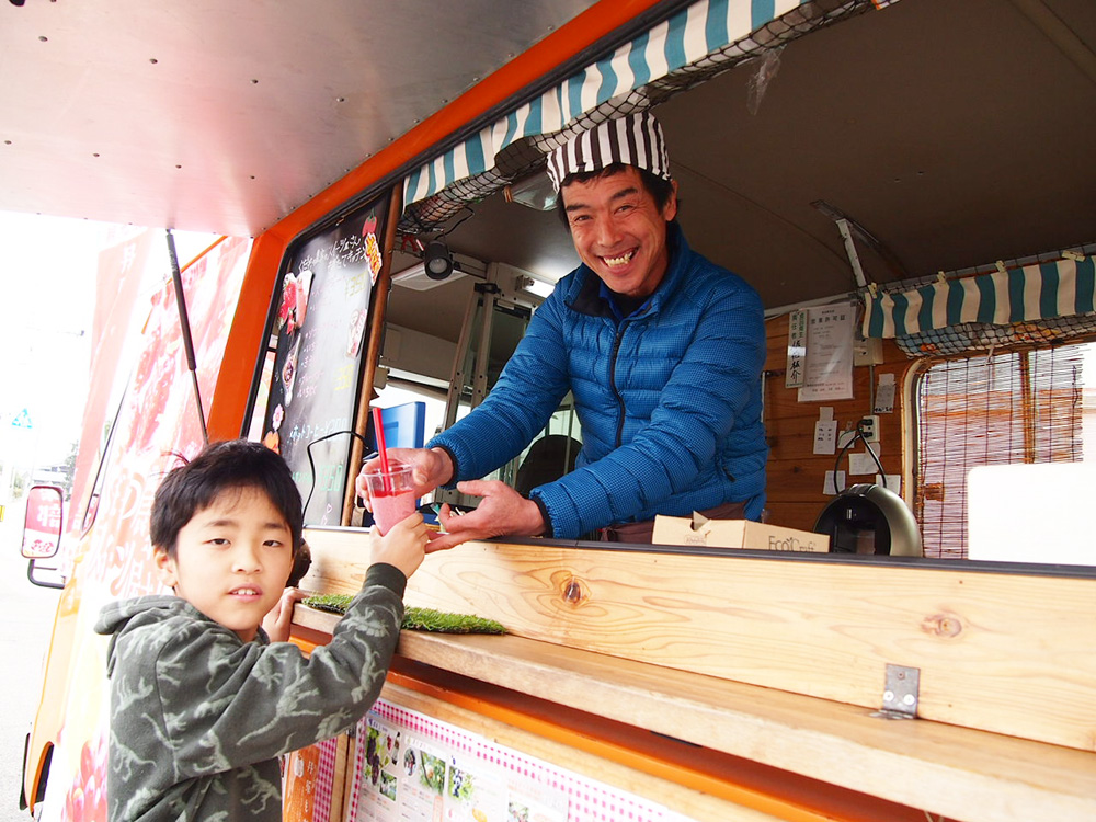 キッチンカーは、地元の8軒の観光農園の宣伝にも一役買っています。