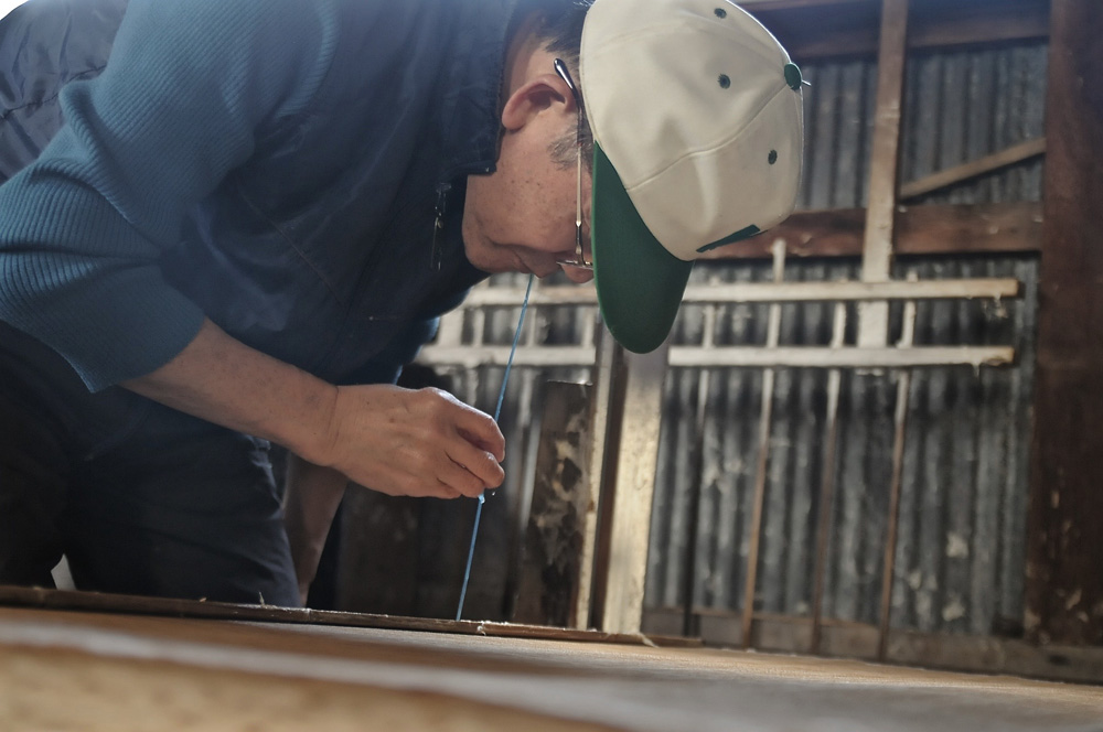 この日は、あいにくのお天気で室内乾燥ですが、乾燥機で乾かすことが主流になった近年でも、秀行さんは愛用歴50年のトタン板を使用。紙には自然乾燥ゆえのしなやかさが生まれます。