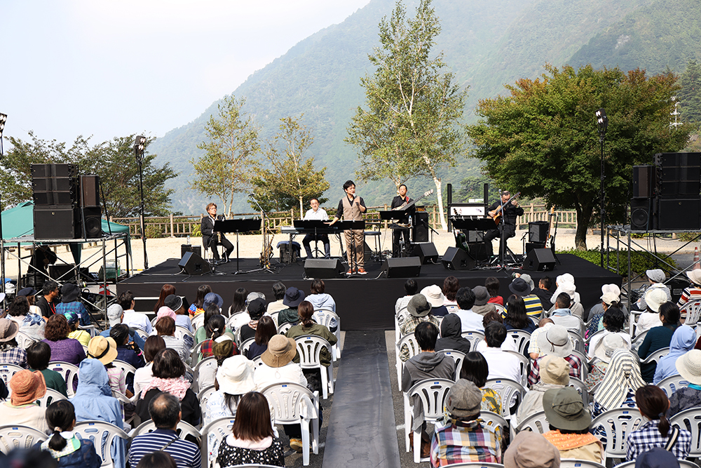 あかがね物語では、この別子銅山の歴史が醸し出す雰囲気と自然が作り出す景観を背景に、この地で初めてとなる野外コンサートを開催。新居浜市出身の俳優・歌手石丸幹二さんらが出演しました。