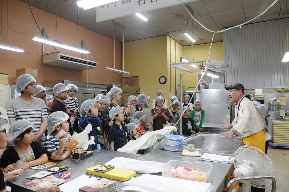 専用の帽子を着用して入った工場内では、別子飴にまつわるクイズを楽しんだり、別子飴づくりを体験したり。