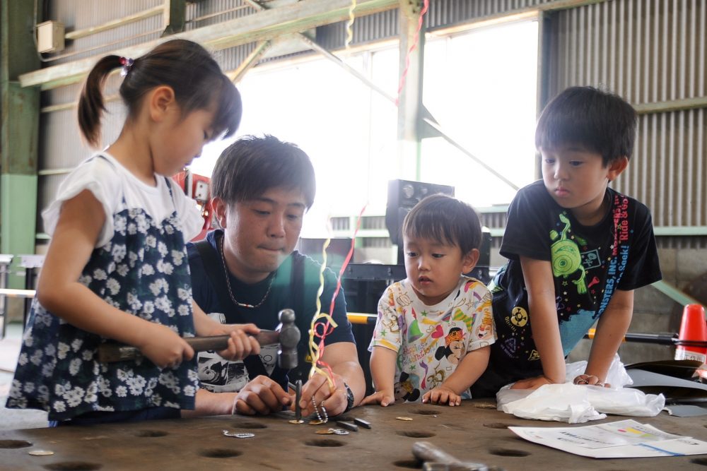 こちらは、金属片でオリジナルのキーホルダーをつくるワークショップ。子どもにも大人にも大人気でした。