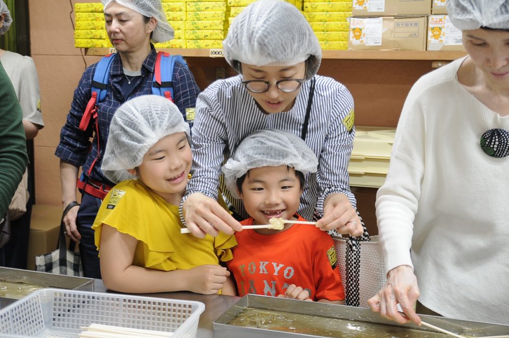 専用の帽子を着用して入った工場内では、別子飴にまつわるクイズを楽しんだり、別子飴づくりを体験したり。