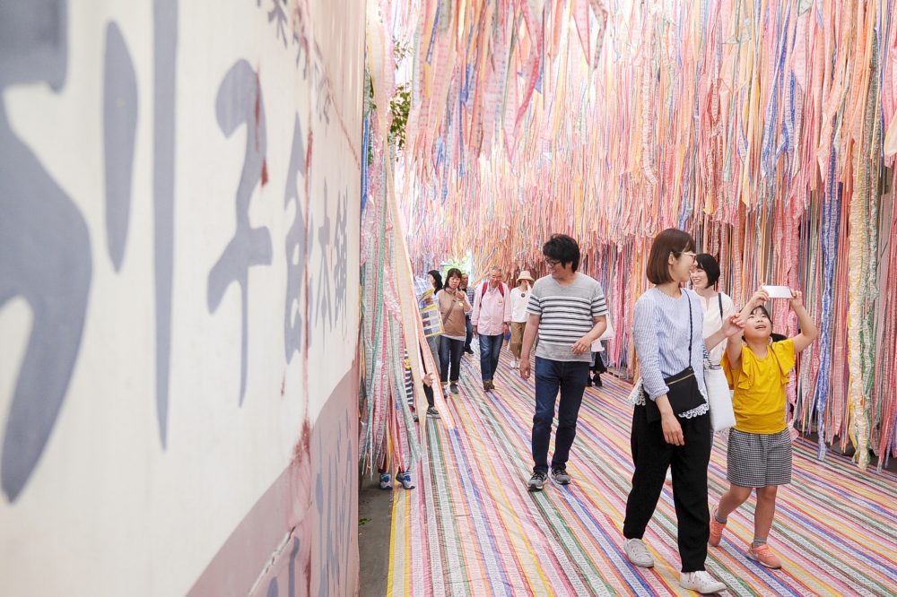 「トンネルを風が抜けるとき、包装紙がなびく美しさ、触れ合う音の心地よさを感じてみてください」と呼びかる松岡さん。