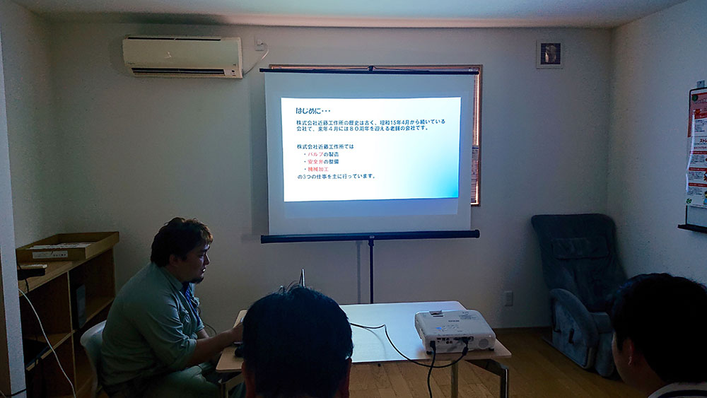 はじめに、事務所で近藤工作所さんの会社概要や、取り扱っているバルブについて簡単な案内があります。