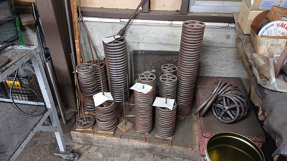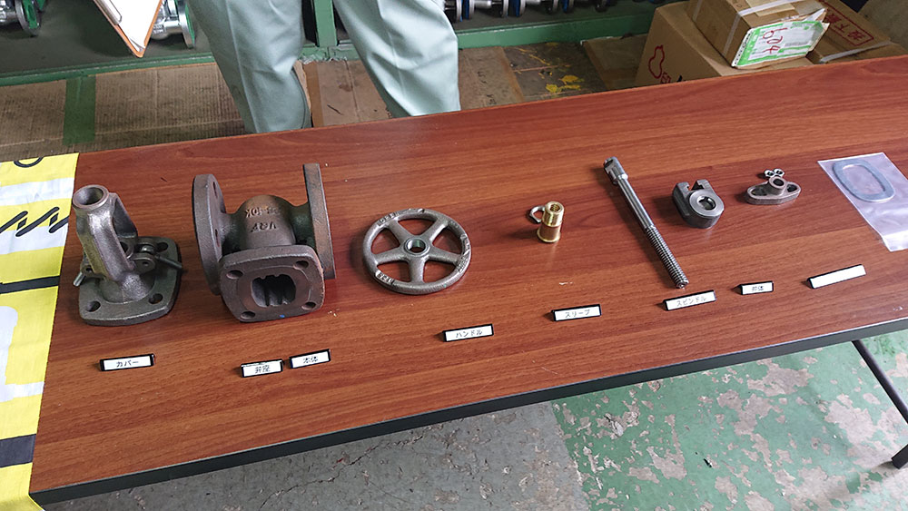 工場のあちこちに加工されて製品になるのを待つパーツや、製品になって出荷を待つバルブが置かれていました。
