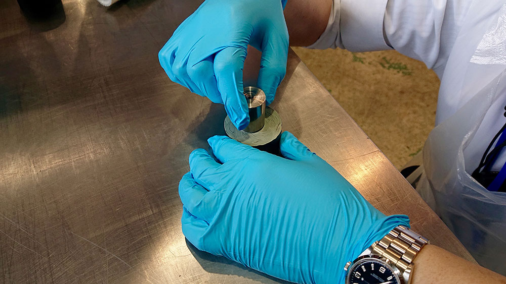 最後に、安全弁整備の際の分解してメンテナンスを行う部分である、パーツの研磨を体験させてもらいました。