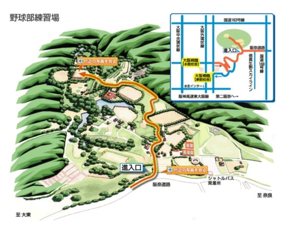 大阪桐蔭の公式ホームページに、ザックリとした地図の画像が載っていました。