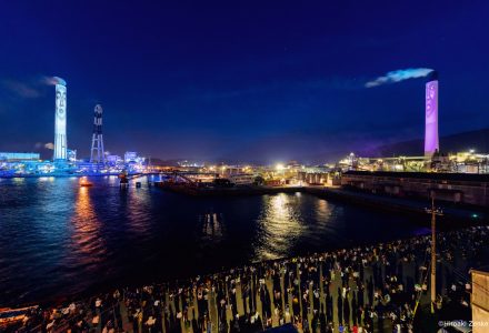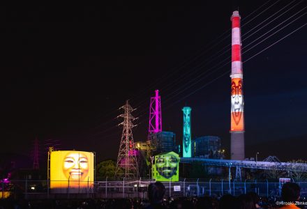 たてものに「顔」をプロジェクションすることで展開される野外劇。巨大な煙突やクレーンたちが人格を持ち、楽しいおしゃべりを繰り広げます。日本を代表する光のアーティスト、髙橋匡太がしかける三夜連続のスペクタクル