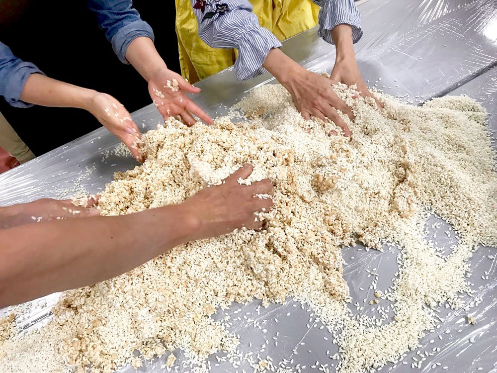 これは麹の菌を殺さないためで、むしろ、いろいろな人の手で混ぜた方が、よりおいしいものに仕上がる、と。