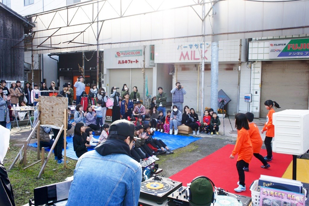 A)きっかけになったのは、オレンジダンススタジオです。店が3年前にできて、初回は1周年の記念としてお客様とこの町にお返しをしたいという気持ちから始めました。本当にこぢんまりとしたものでした。2回目は、少しボリュームアップさせて、ステージもより楽しく、フリーマーケットも行い商店街全体がにぎわうスタイルをつくりました。