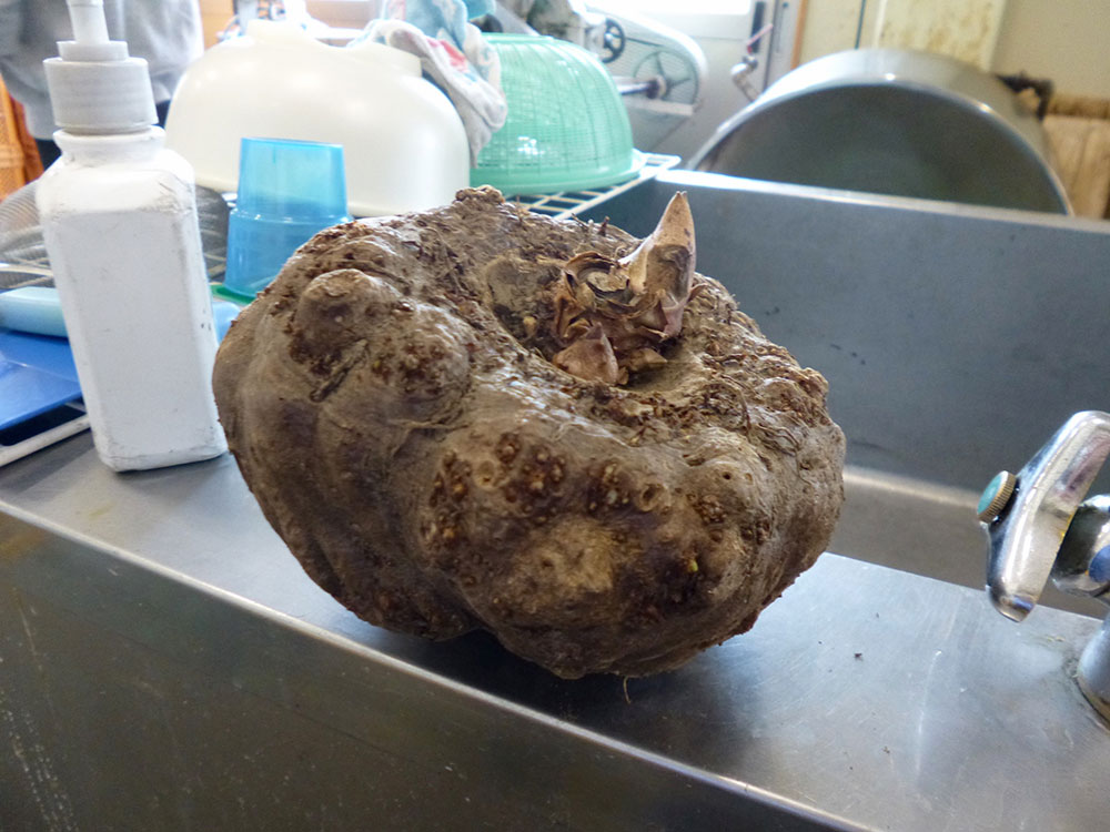 生のこんにゃく芋を材料に、伝統的な「バタ練り」と呼ばれる製法を経て作られています。そうして作られたこんにゃくは、形・大きさ・固さもさまざま……こんにゃくの奥深さを感じます。