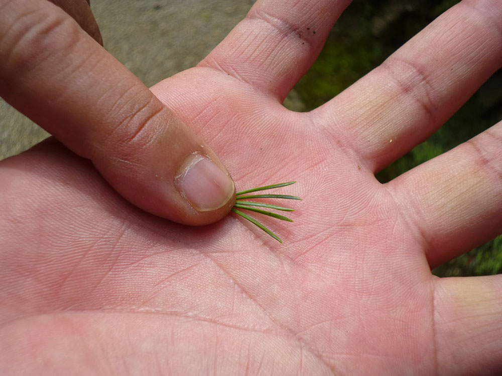 松といえばアカマツやクロマツが有名ですが、これらは2針葉です。子ども時代に互いに2針葉の短枝を絡ませ、引っ張り合った思い出がある方もいるかもしれません。