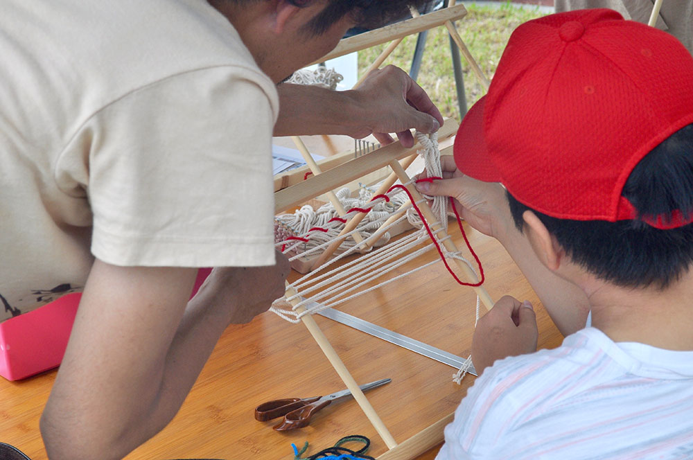 ハンモックの手編みワークショップもありました。1回500円。ハンモック職人に教わりながら、子どもも大人も真剣にハンモックを編んでいました。ゲストの達成感たるや。編み上げたミニハンモックは、持ち帰ることができます。記念にいいですね!
