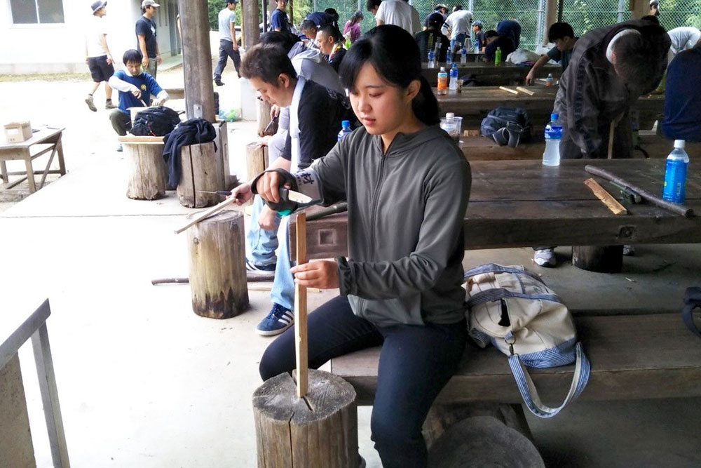 今回は、四国中央市の新宮少年自然の家で開催されたチャレンジプログラム「ブッシュクラフト体験(初心者向け遊んで学ぶサバイバル術!)」を、同回生の岩田さん(写真右)と共に体験してきました。