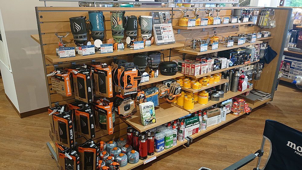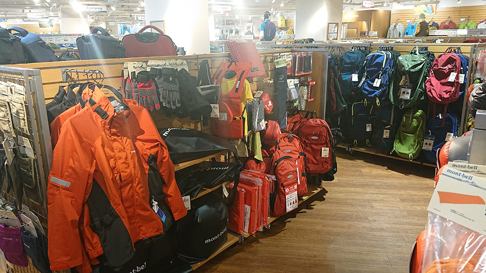 モンベルストアでは、特にアウトドア関連用品が充実しています。