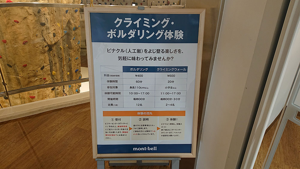 建物内は、280坪のモンベルストアをメインに、クライミングやボルダリングができるスペース、会議室なども併設されています。