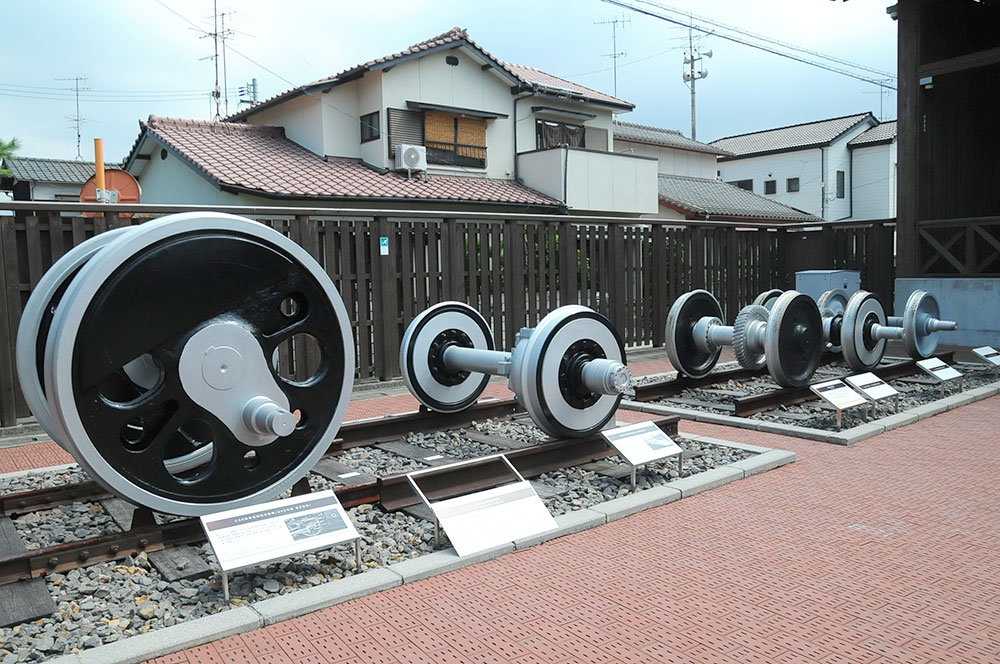 屋外展示場では、普段は間近で見ることができない鉄道標識、信号機や動輪などの実物を見学できます。
