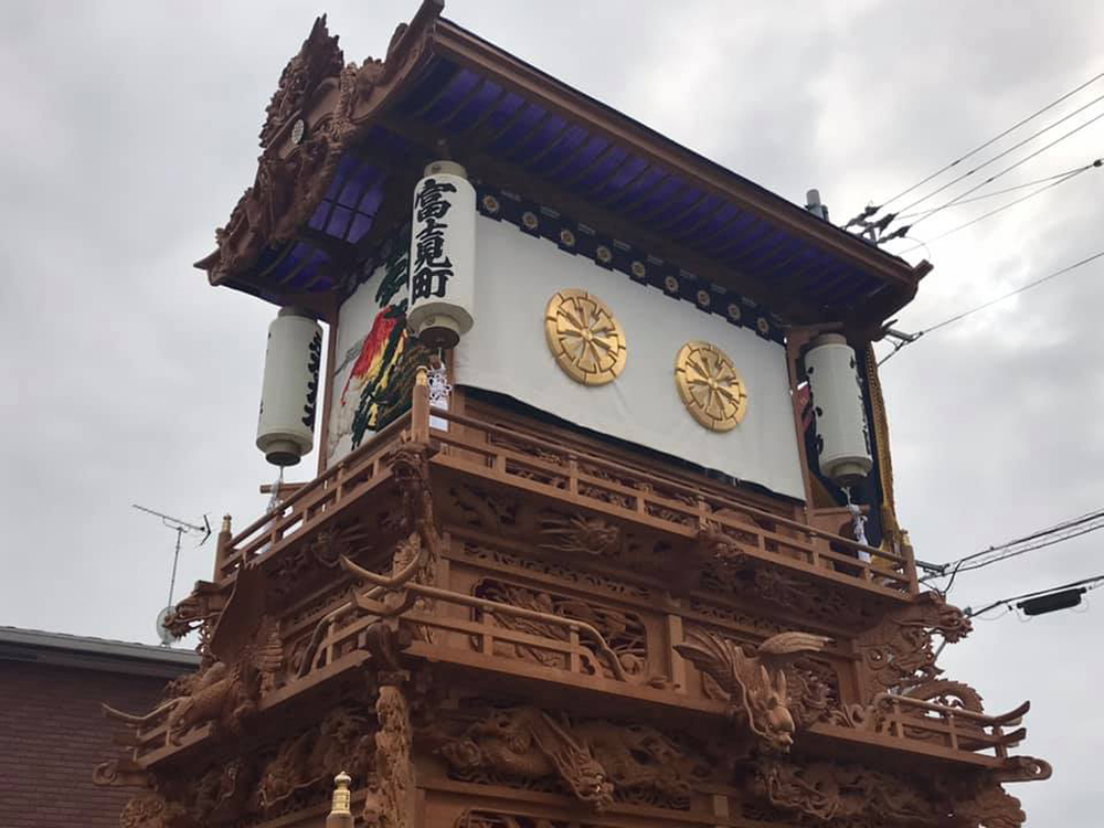 平成6年に新調された富士見町のだんじり。胴板彫刻は源平合戦の図柄を施していています。