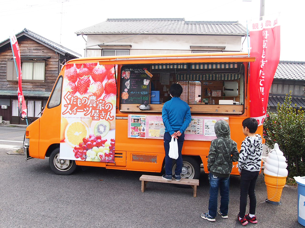 キッチンカーは、地元の8軒の観光農園の宣伝にも一役買っています。
