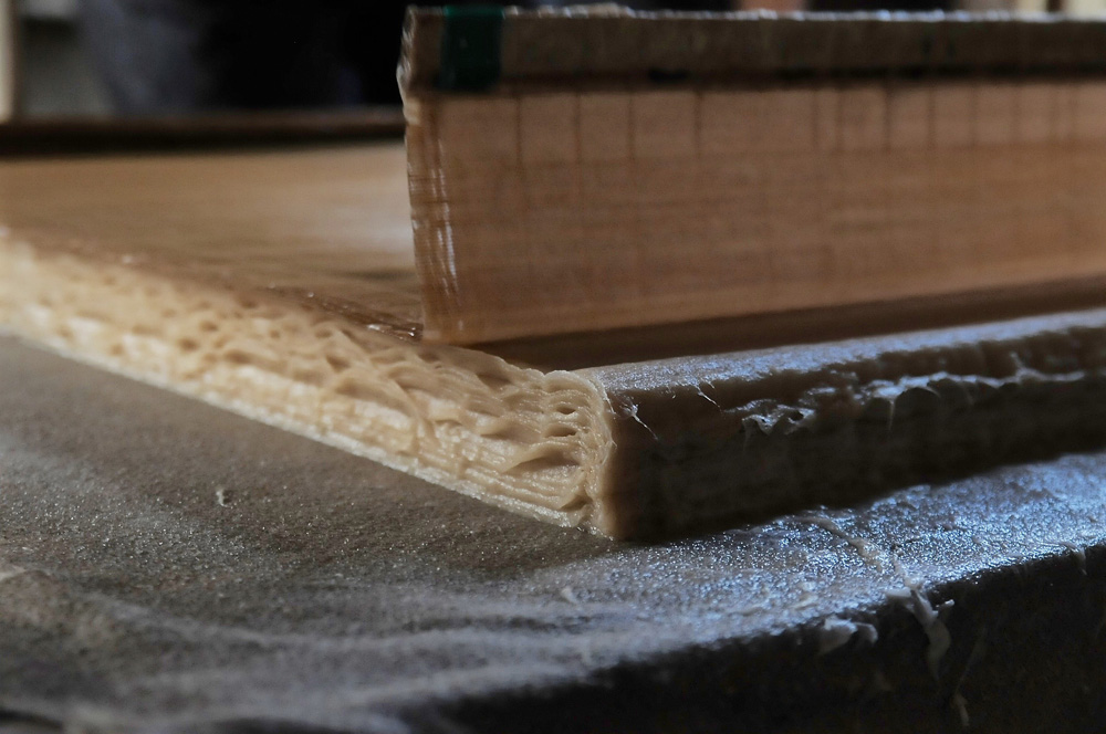 乾燥した紙を断裁して、ようやく出来上がりです。順調にいって10日。この気の遠くなるような緻密な工程を経て完成した和紙は、しなやかなのに耐久性もあることで、需要があります。