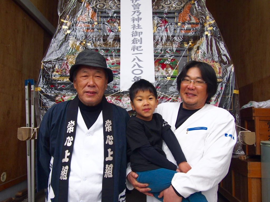 今の屋台が新調されたのは大正14年。当時は白木のだんじりで、昭和59年に今の着色漆塗りに。「今、同じようなだんじりを作ろうとしても、この薄さで彫刻の立体感を出すのは難しい。昔の人の技術がどれだけ優れていたのかが分かる。色を塗っているから管理が大変だけどね」と思い入れを語ってくれました。