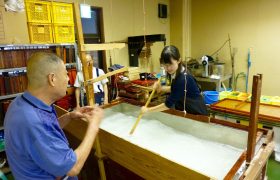 自分と同じくらいの大きさの和紙を漉く。職人さんの評価は……。