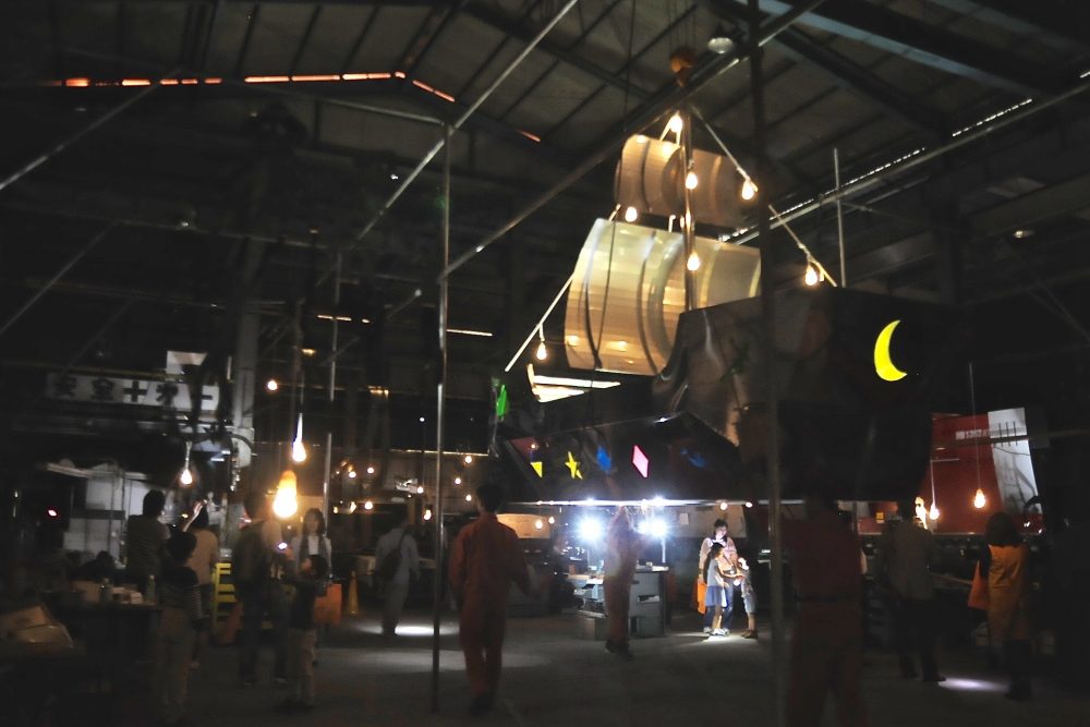 「最初から夜の海にするつもりでした。工場なので、明かり取りの穴がたくさん。それを暗転させることも大変でした」と牛島さん。