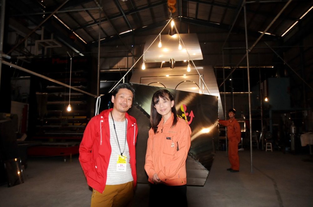 ▲美術家の牛島光太郎さん(写真左)と大伸ステンレスの酒井志津香社長(写真右)