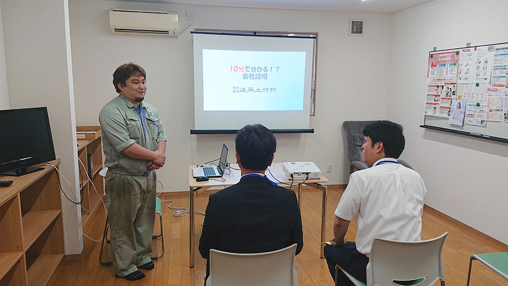 はじめに、事務所で近藤工作所さんの会社概要や、取り扱っているバルブについて簡単な案内があります。