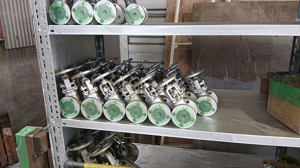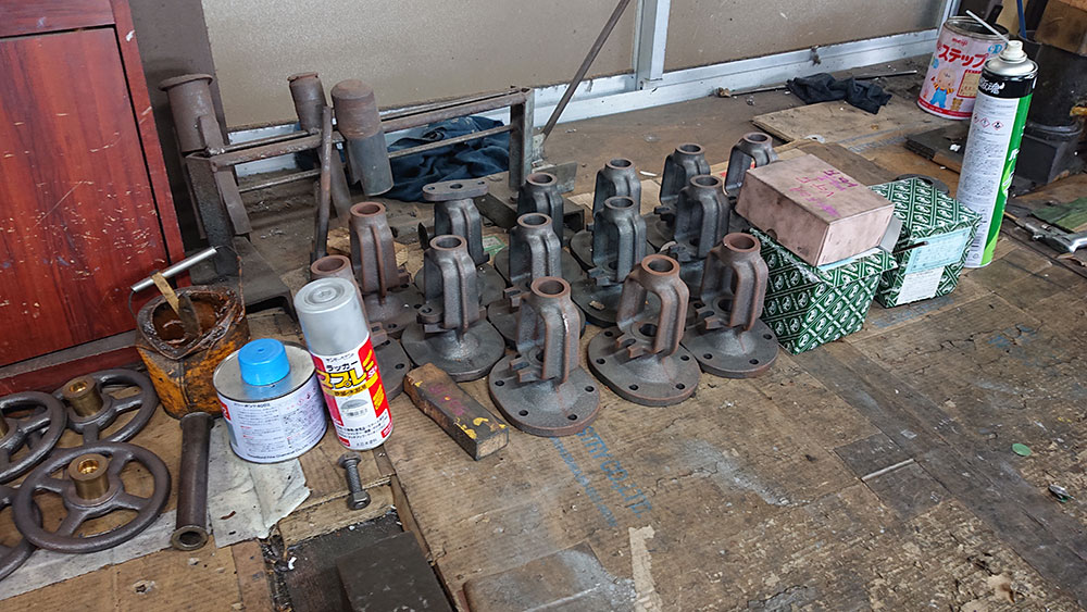 工場のあちこちに加工されて製品になるのを待つパーツや、製品になって出荷を待つバルブが置かれていました。