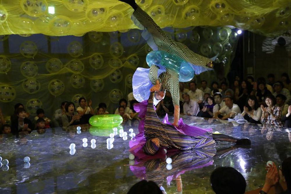 コスチュームアーティスト・ひびのこづえさんが、作・演出・美術・衣装の全てを担当。サーカス学校出身のホワイトアスパラガスと新体操出身の引間文佳さんが海をイメージした衣装を着て、川瀬浩介さんの音楽でパフォーマンスを繰り広げます。公演には、地元妻鳥小学校ダンスクラブの児童が出演。三島高校の生徒も公演サポーターとして参加します。