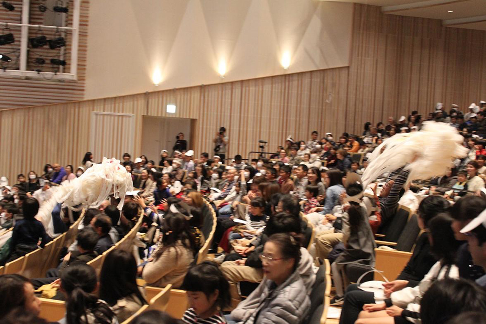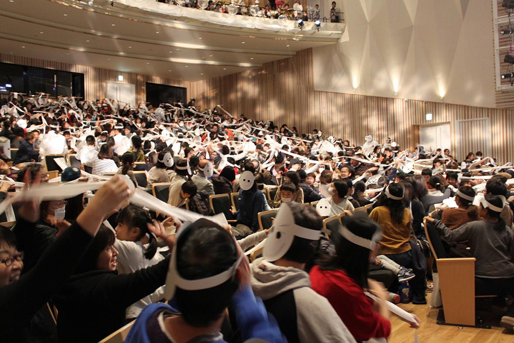パフォーマンスの随所で、地元の子どもたちが大事な役どころを担い、なにもかもが完璧に調和していく……。いつのまにか、あれだけ騒がしかった会場がしずまり返り、子どもたちも一緒に海のものがたりに飲み込まれていったのでした。